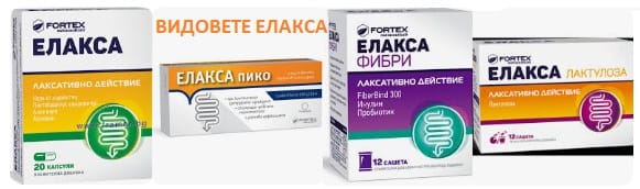 Елакса е серия на Фортекс в помощ на изхождането. Продуктите имат различни активни вещества.